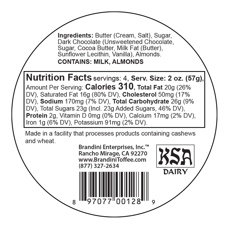 Satisfy your sweet cravings with our 1/4 LB 6 Pack Almond Toffee! This pack of our award-winning toffee is perfect for sharing with loved ones or indulging by yourself. Crafted with the finest ingredients, our small-batch recipe guarantees freshness and quality in every bite.